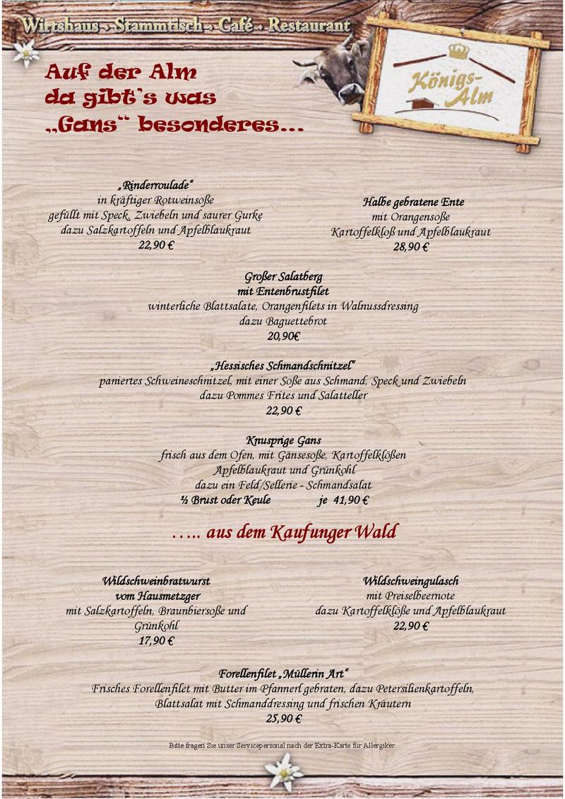 Wir behalten uns Änderungen an unseren Speise -und Getränkekarten